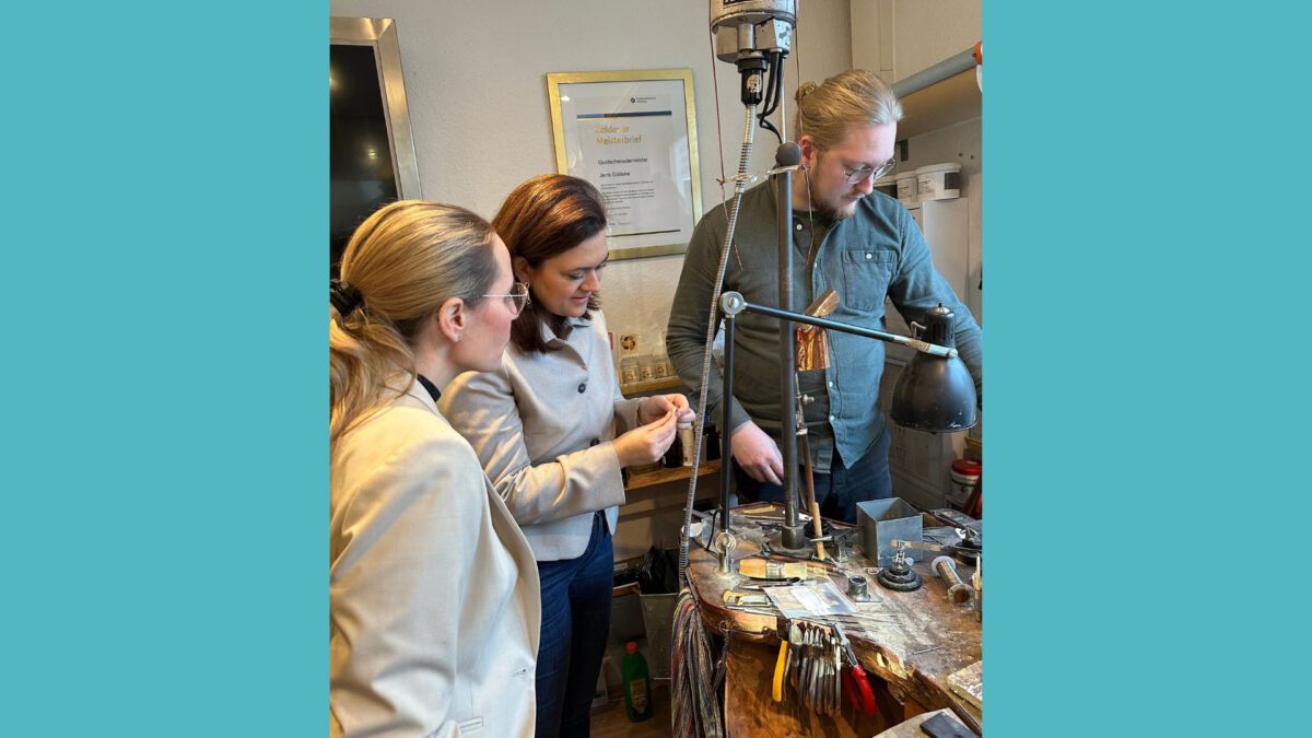Die Bundestagsabgeordnete Franziska Hoppermann, Dr. Natalie Hochheim und Silke Bertram aus der CDU-Bezirksfraktion Wandsbek durften gemeinsam einen ganz besonderen Ort besuchen: die Werkstatt des Goldschmieds Michel Jens Gödeke, der nicht nur mit Edelmetallen arbeitet, sondern mit Leidenschaft, Präzision und viel persönlichem Einsatz.
