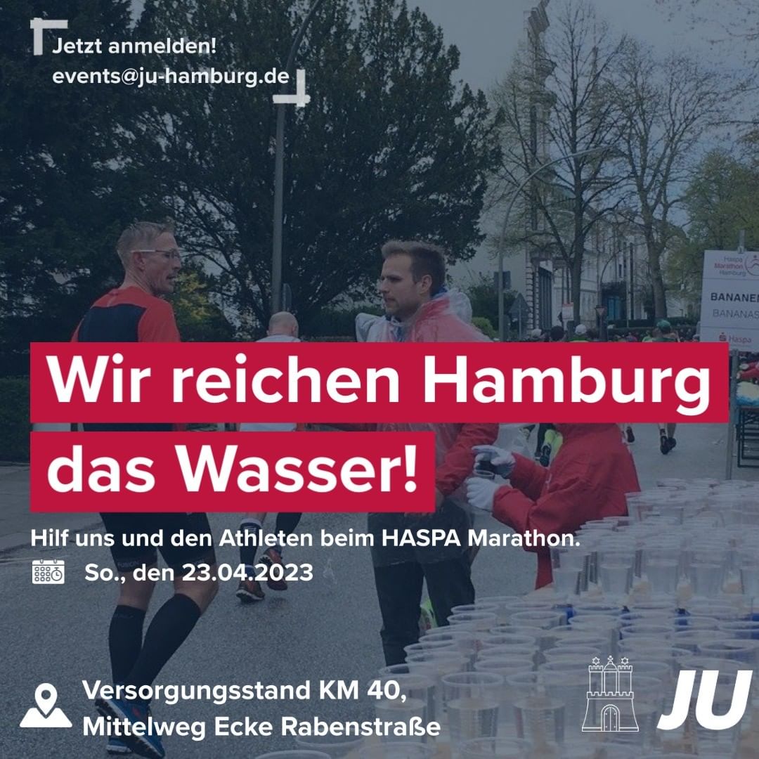 Mit Traditionen soll man ja bekanntlich nicht brechen, daher unterstützt die Junge Union auch in diesem Jahr den Haspa Marathon Hamburg mit der Betreuung eines Versorgungspostens an der Laufstrecke.