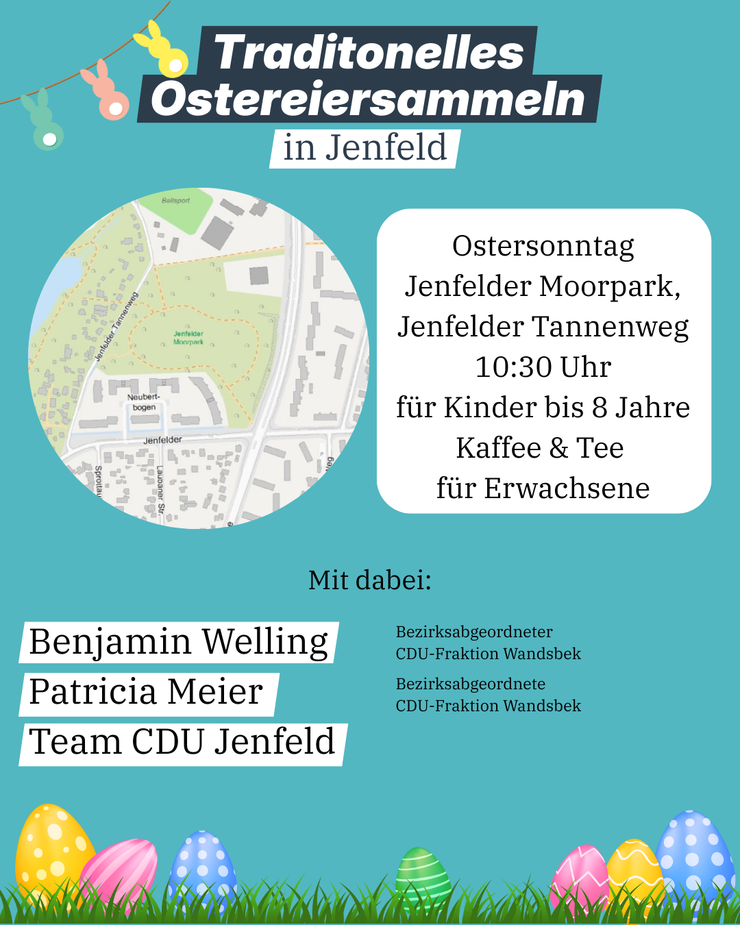 ➡️ Im Jenfelder Moorpark freut sich die CDU Jenfeld auf das bunte Treiben der Kinder. 🧺🥚